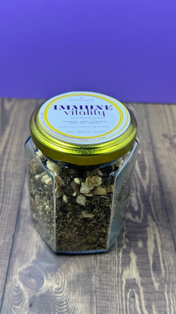 Immune Vitality blends antioxidant-rich botanicals with uplifting citrus and warming spice to nurture the immune system and elevate your spirit. Perfect for daily wellness or seasonal support when you need an extra boost of light.